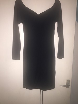 black ribbed long sleeve bardot ruched bodycon dress