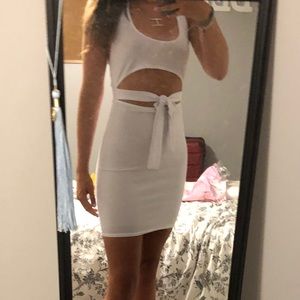 white halterneck cut out tie detail bodycon dress