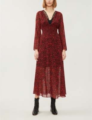 Maje Ravila Floral-print Crepe Maxi maje red dress