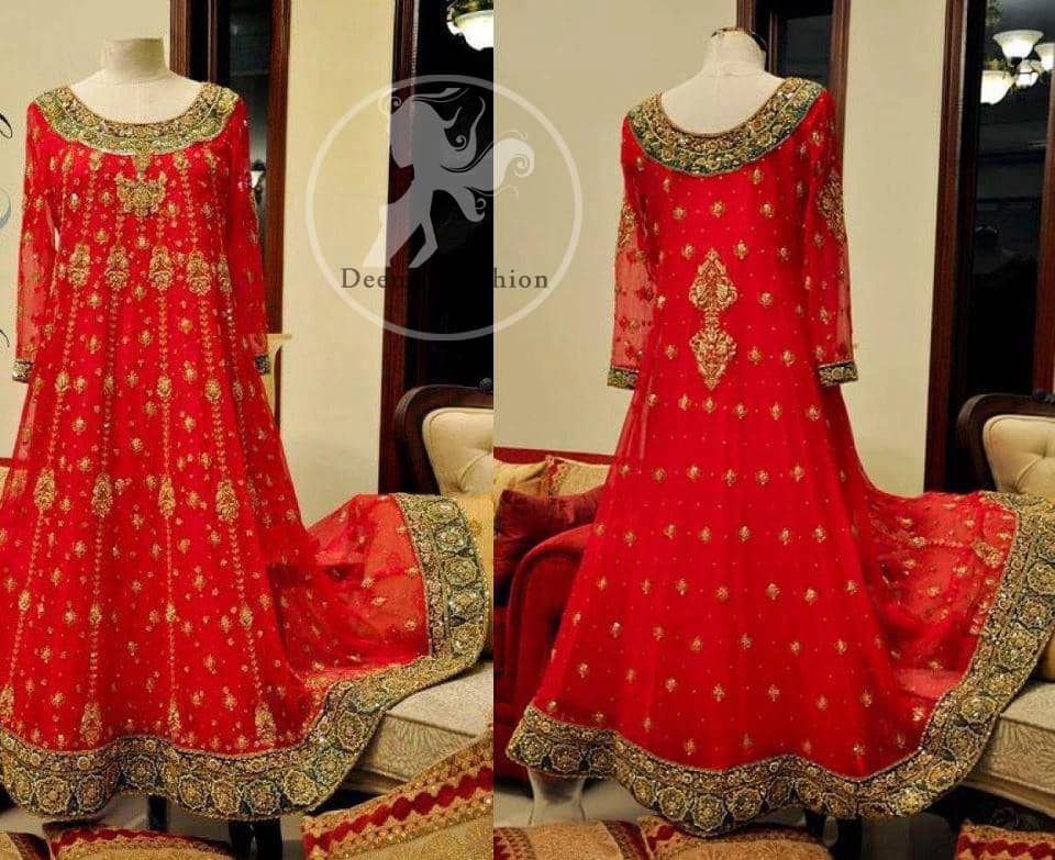 Embellished Border Bridal Frock Churidar red frock long