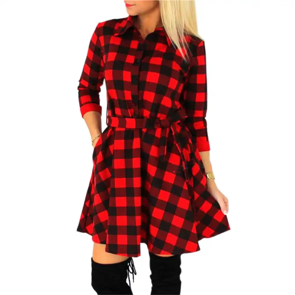 Autumn Women Dress Winter Plaid Dresses red and white plaid dress