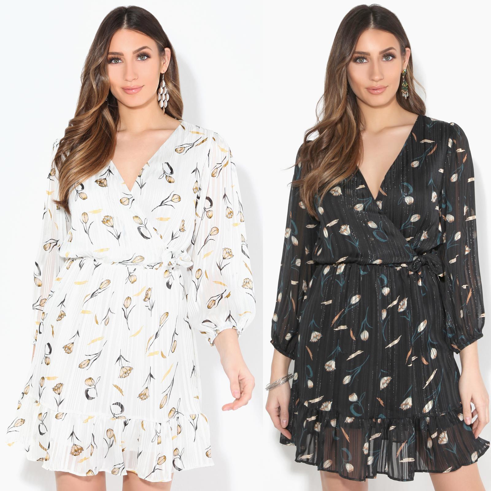 Women Ladies Wrap Dress Frill Ruffle chiffon sundress