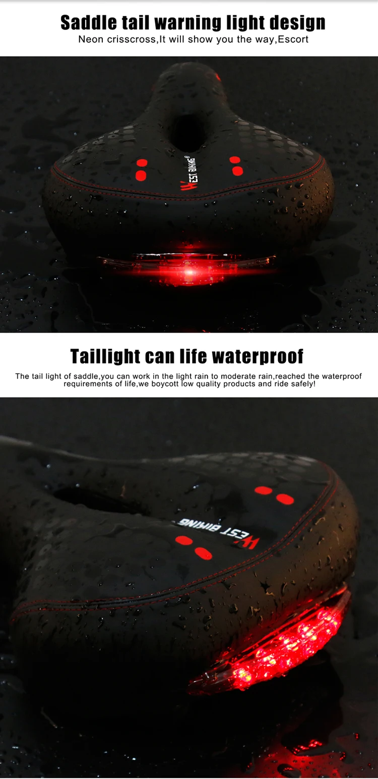 West Biking Bike Saddle With Tail Light Thicken Widen Mtb Saddles Soft Comfortable Cycling Hot cycling saddle