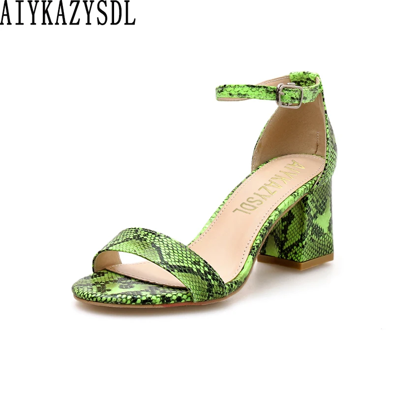 Neon Green Sandals Faux Snake Print lime green block heels
